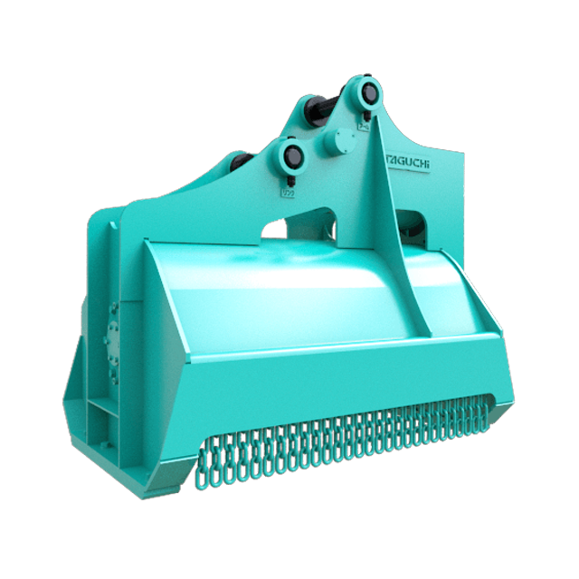 バックホウに取り付けるタイプの草刈機です。